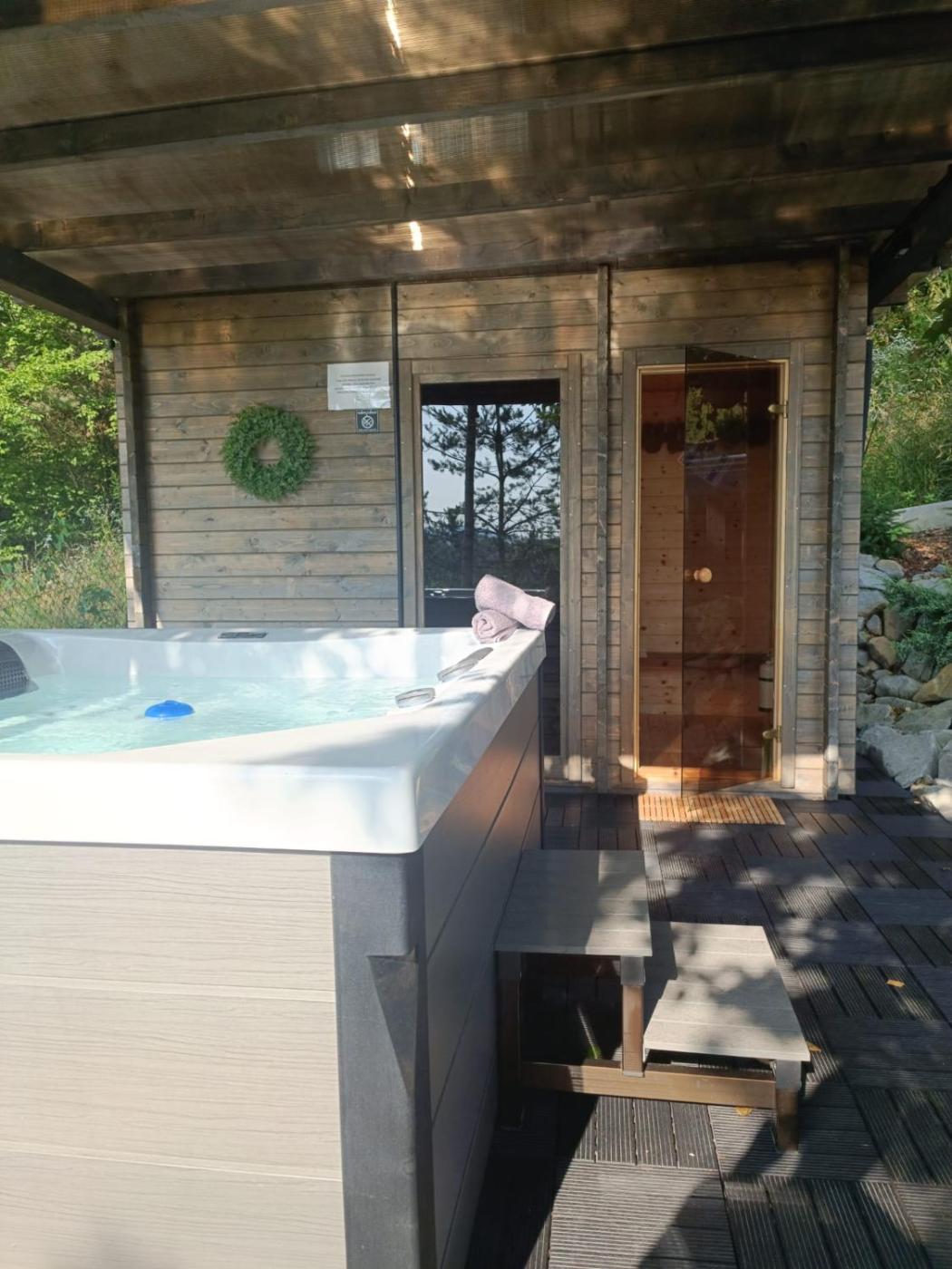 Zaplecze odnowy biologicznej obiektu Mucharskie Stodoły Stodoła II - Garden Spa obejmuje saunę i wannę z hydromasażem.