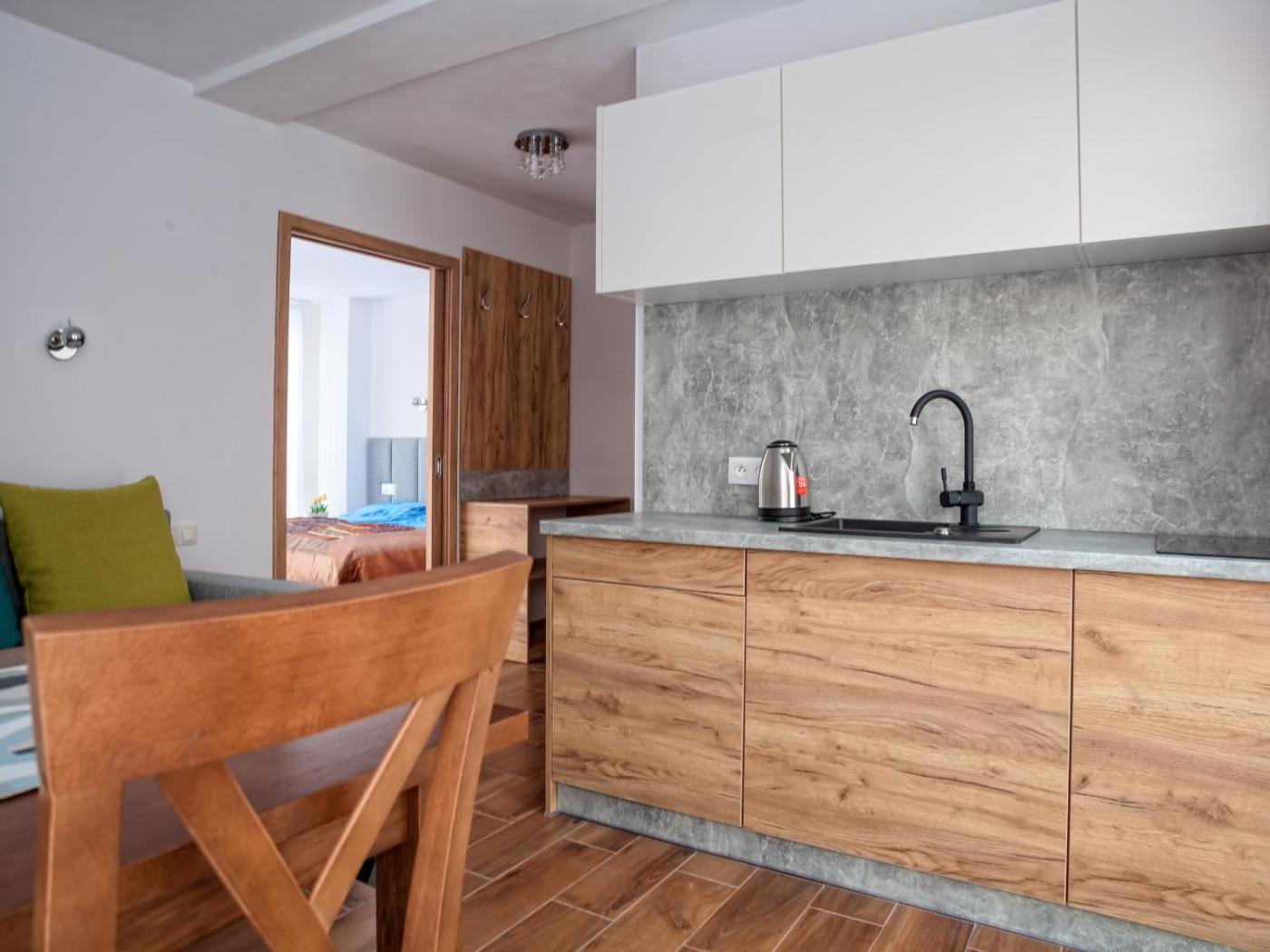 Apartament typu Deluxe z tarasem. Boasting a private entrance, this apartment includes 1 living room, 1 separate bedroom and 1 bathroom with a walk-in shower and a hairdryer. The fully equipped kitchen has a stovetop, a refrigerator, kitchenware and an electric kettle. Featuring a terrace with garden views, this apartment also offers soundproof walls and a flat-screen TV with satellite channels. The unit has 2 beds. Apartament - 4 osobowy. Powierzchnia pokoju ok.: 32 mkw. ;