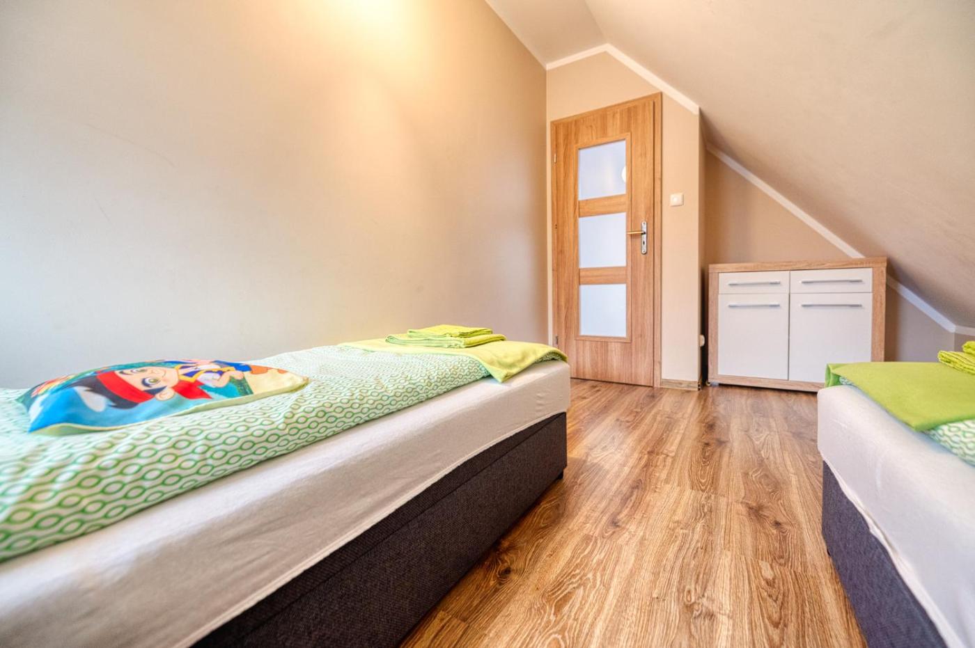 Dom z 4 sypialniami. Guests will have a special experience as the holiday home provides a fireplace. Guests will find a refrigerator, kitchenware and an electric kettle in the kitchen. The holiday home also offers a barbecue. This holiday home features a washing machine, a wardrobe, a flat-screen TV and a terrace. The unit offers 8 beds. Dom wakacyjny - 10 osobowy. Powierzchnia pokoju ok.: 90 mkw.
